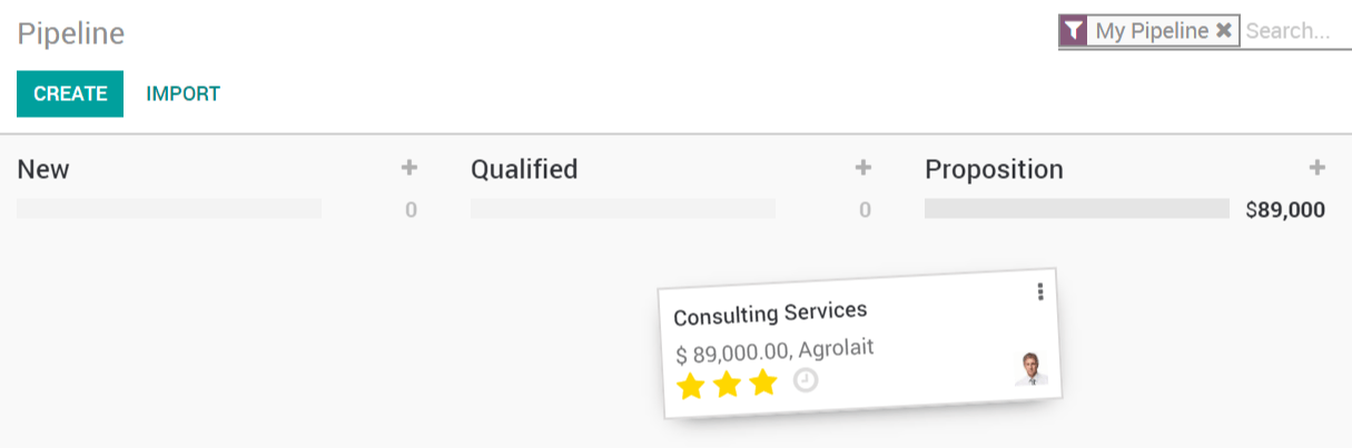 Quand vous qualifiez une piste en opportunité, vous aurez sans doute besoin de lui faire parvenir un devis. Vous pouvez faire cela directement dans l'application CRM d'Odoo.